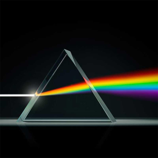 프리즘은 빛을 굴절, 분산시키는 대표적인 과학 실험 도구입니다. 일반적으로 광학 유리로 만드는 데, 프리즘을 통해 들어온 빛은 위의 사진처럼 휘어지고 분산됩니다.